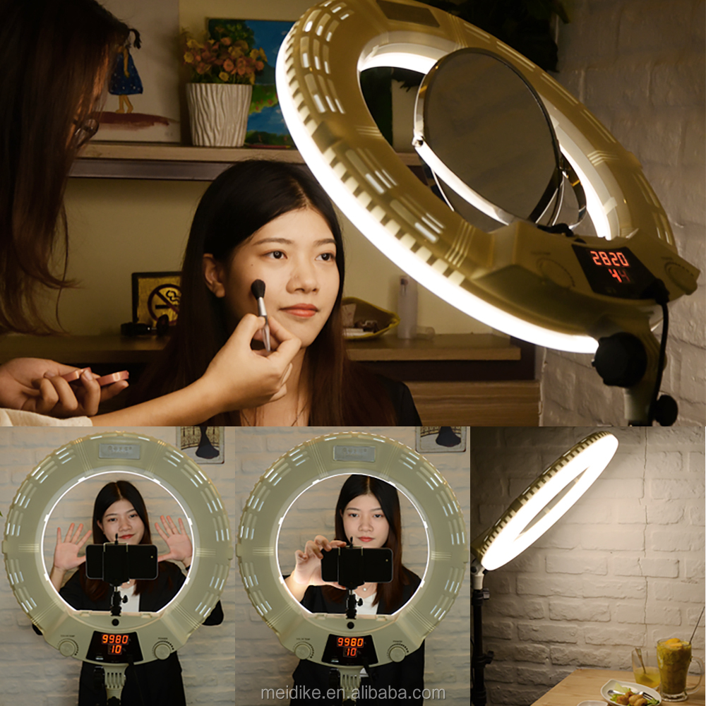 Led circle ring light 18 inch QS-480D 2800-9990K for phootgraphy with mirror phone holder blue tooth APP controlled