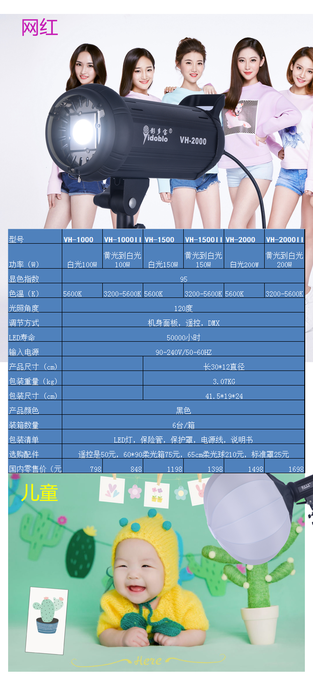 VH系列100/150/200W太陽燈攝影燈柔光不刺眼可裝保榮拍攝柔光箱