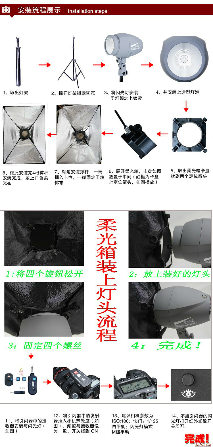 - Reflector / softbox / light shed / Stands