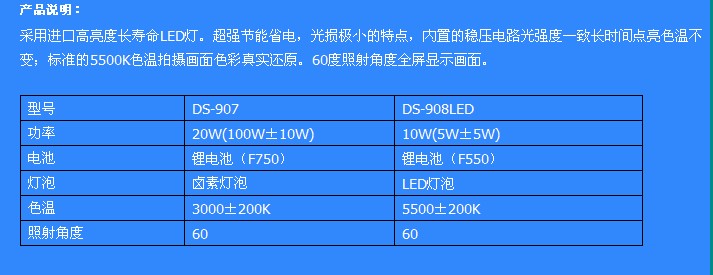 - LED lights / continuous light / energy saving lamps